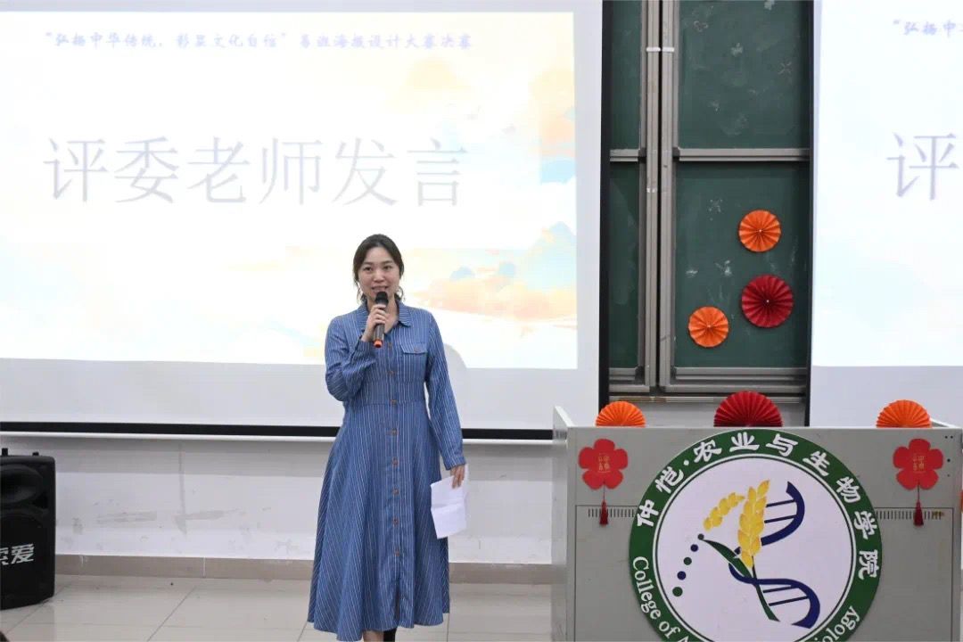 比赛最后,邝健睿老师进行了总结发言。她表示,本次“弘扬中华传统,彰显文化自信”易班海报设计大赛旨在通过海报这一视觉艺术形式,激发大家对中华传统文化的热爱和传承意识,同时展现青年大学生的文化自信和创新精神。同学们用独特的视角和手法,深入挖掘中华传统文化的精髓,将传统元素与现代设计相结合,创作出了一幅幅既有传统韵味又不失时代感的海报作品,生动地诠释了中华文化的博大精深和独特魅力。在未来的日子里,我们也要继续共同为传承和发扬中华优秀传统文化贡献自己的一份力量。