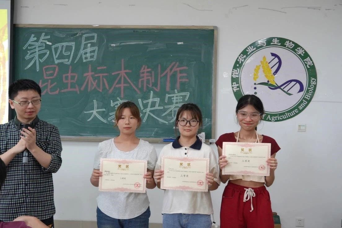 本次大赛共收到50份来自全校各院系、各年级学生的优秀作品,经过初赛的激烈角逐,最后选出15支参赛队伍进入决赛选拔。决赛分为三个环节:昆虫微景观PPT讲解、昆虫标本制作与鉴定和昆虫知识竞赛,最终由三轮成绩汇总统计出比赛名次。