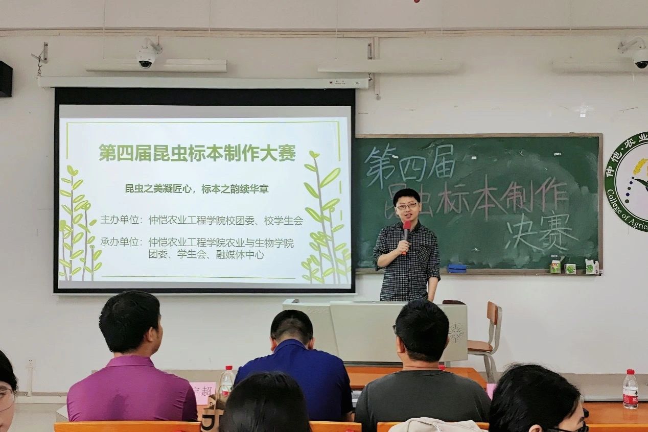 昆虫之美出自匠心之手,标本之韵延续昆虫之华章。为了丰富学生课外实践活动,5月26日,由m88 app校团委、校学生会主办,m88 app团委、学生会、融媒体中心承办的以“昆虫之美凝匠心,标本之韵续华章”为主题的第四届昆虫标本大赛决赛,在生科大楼A座502、503室顺利举办。出席本次决赛的评委及嘉宾有,m88 app植物保护系教师舒本水、刘凯、何沐阳,团委副书记梁定超及学生副书记主席主任团。本次活动由何沐阳主持。