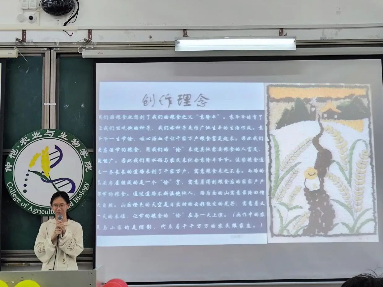 公布比赛结果后,李彩琴老师对比赛进行点评。李老师表示,各队伍的切题的构思给她留下了深刻的印象,每一份作品都做工精细,具有很好的观赏性,也让同学们感受种子人们生活带来的便利,并鼓励同学们积极参与种子画比赛,希望下一届种子画大赛能够看到更多优秀的作品。