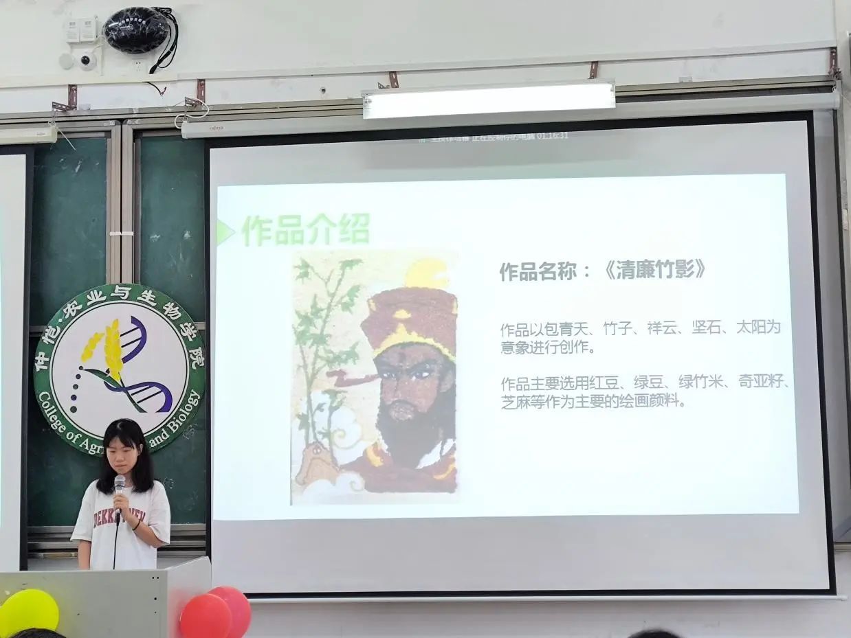 此次比赛不仅丰富了同学们对作物种子颜色、形状的认识,也加强学校师生对廉洁的理解与认识,提升了各自的动手能力和合作创新能力。本次比赛为全校师生了解m88 app提供了一个良好的桥梁。通过此次比赛,希望同学们能够借助种子画来表达对清廉的支持和祖国的热爱,展望未来美好生活。