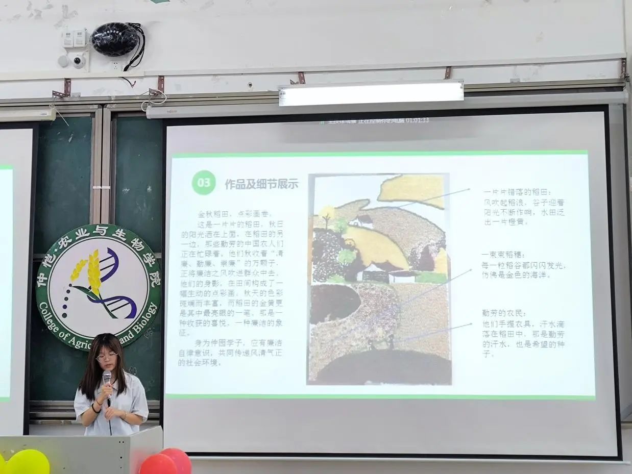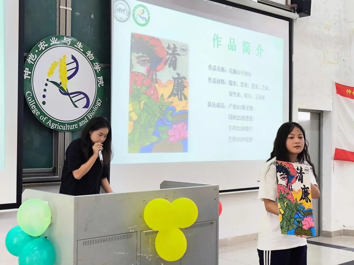 为深化大学生对廉洁文化的理解,培养青年一代的廉洁自律意识,共同营造风清气正的校园环境、传递社会正能量。2024年6月20日下午,由校纪委主办,m88 app在白云校区D2小礼堂承办了第五届种子画大赛决赛。出席本次比赛的嘉宾及评委们有学校纪委委员、园艺园林学院党委书记陈晓玲,m88 app党委书记周超雄、党委副书记张金凤,m88 app刘季平老师,园林园艺学院李彩琴老师,动物科技学院杨崧老师,m88 app辅导员梁定超,各兄弟学院代表以及m88 app学生副书记主席主任团成员。