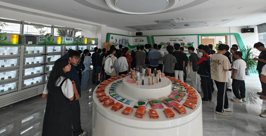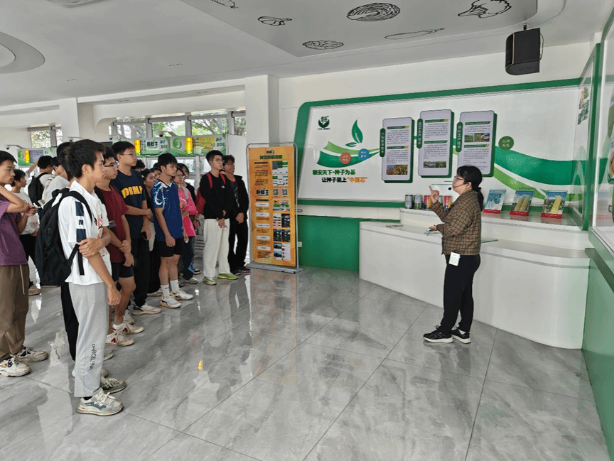 首先参观的院士工作站-粤旺集团傅廷栋院士工作站,首先映入眼帘的是,一粒种子就是一个世界。张姿丽老师介绍了广东的种子行业主要涉及水稻、玉米、甘薯、蔬菜、花卉、果树、茶叶以及南药种业方面的,并强调良种是农业生产的基础, 每一个良种要发挥其优势,需要与之配套的栽培技术结合才可以发挥最大增产潜力,促进增收。带领大家参观了广东省水稻、玉米、蔬菜的部分主导品种,介绍了水稻、蔬菜、茶叶主导种植技术和无土栽培、气雾栽培技术,与现代化电商接轨的“柜鲜生”吸引同学们的视线,通过这些“柜鲜生”可以购买到需要的品种和营养土进行栽培。每一个成果,每一个展品,每一个样品都凝聚着科研人员推动农业科技进步所做出的努力,让大家敬仰,也希望同学们学好知识,知农爱农,为我国农业发展贡献自己的力量。