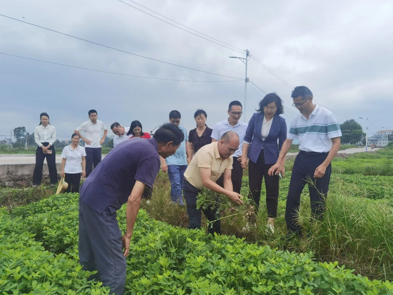 揭牌仪式后,与会领导、嘉宾和代表们参观考察了位于鳌头镇北淦村的广东集跃食品有限公司的花生加工包装生产线、以及粤西高油酸花生试验示范基地。该基地自2023年初由省乡村振兴驻鳌头镇帮扶村工作队和北淦村委会联合推动,在郑奕雄教授团队的指导下,试种m88 app承担的广东省揭榜挂帅、种业产业园等项目所育成的高油酸花生新品种,并取得了显著成效。今年,这一成功的种植模式得到了进一步扩大,新种植的花生表现出了良好的生长态势、丰收在望。