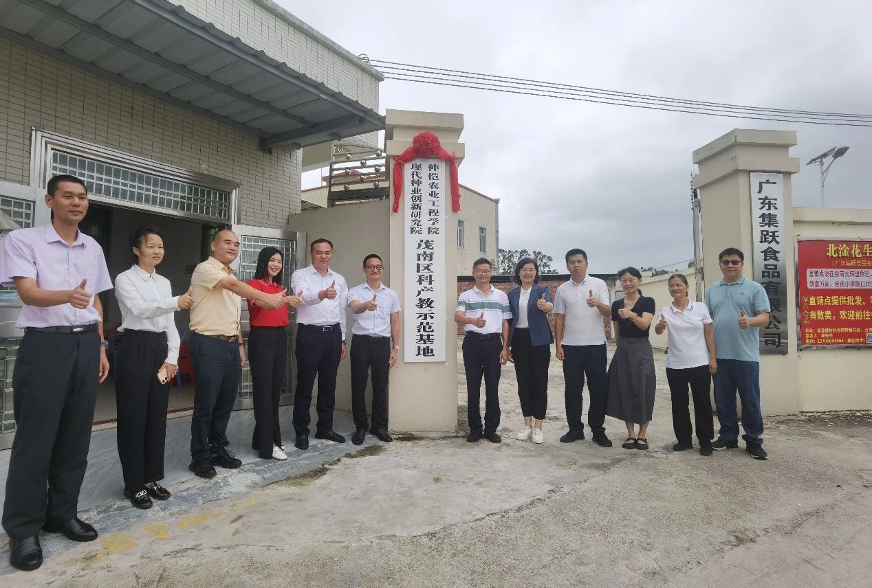 为深入贯彻落实广东省百县千镇万村高质量发展工程,5月30日由m88 app现代种业创新研究院与茂南区鳌头镇驻镇帮扶工作队、广东集跃食品有限公司合作共建的“茂南区科产教示范基地”在茂南区鳌头镇北淦村正式揭牌。m88 app现代种业创新研究院郑奕雄教授、刘季平副教授,茂南区农业农村局常务副局长江桂清,省乡村振兴驻鳌头镇帮扶村工作队长、鳌头镇党委副书记(挂职)石欣景,鳌头镇副镇长张旭东,广州国家现代农业产业科技创新中心粤西研究院院长凌小梅,m88 app联合培养研究生单位——广东石油化工学院黄新敏博士,鳌头镇北淦村委书记吴汉文,以及茂南花生产业园实施主体等各方代表共20余人出席了揭牌活动。