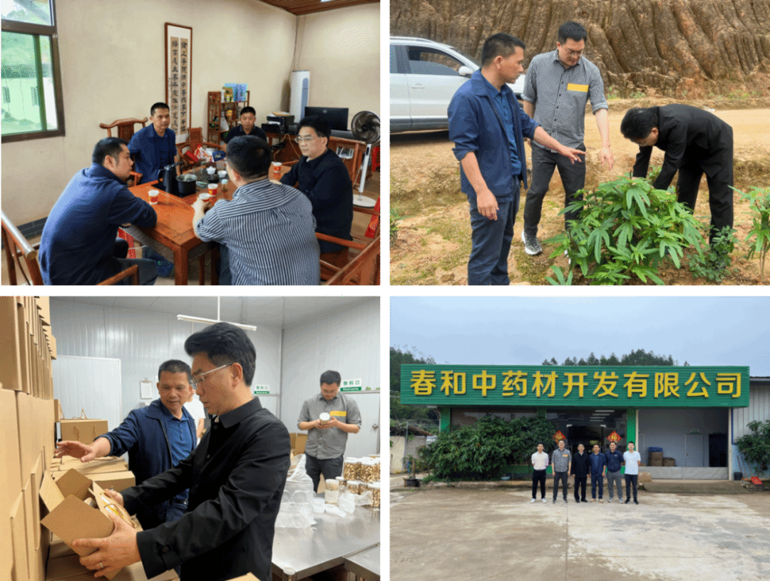 4月8-9日,m88 app,m88 app党委书记周超雄、科技部副部长陈青春、驻蓝塘镇帮扶科技特派员吴仲真、杨彬一行来到河源市紫金县省农业龙头企业广东远添农贸实业有限公司、广东省美丽乡村农业发展有限公司、校友企业春和中药材开发有限公司调研,推进产教融合和访企拓岗促就业工作。